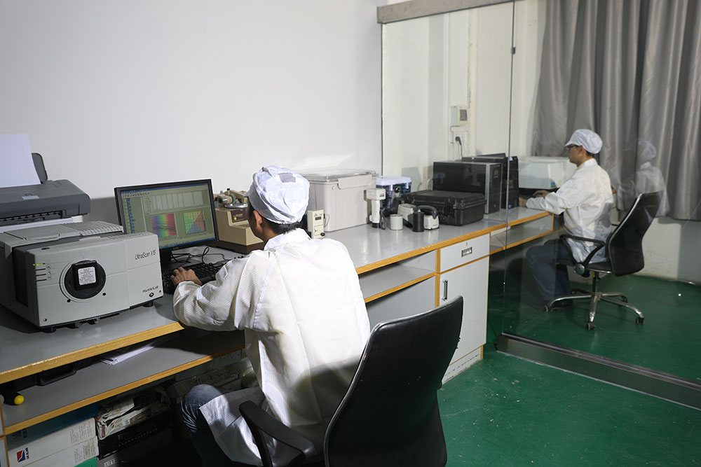 廣東隆玻科技集團光學實驗室組建于2010年9月10日,主要負責廣東隆玻科技集團玻璃原片顏色的一致性監(jiān)測、生產(chǎn)檢測、外送樣板出廠前顏色全檢以及廣東隆玻科技集團對外發(fā)布的所有鍍膜產(chǎn)品光熱學性能參數(shù)檢測與計算。在硬件上擁有目前國內外最先進的美國進口Lambda 750S全光譜儀、美國進口UITRU Scan VIS臺式光度計、日本進口UITRU Scan VIS手提光度計以及GSTR在線光度計。在人員配備上由一個敢于開發(fā)、善于管理、精于技術、團結奮發(fā)的年輕團隊組成。本光學實驗室出具的數(shù)據(jù)報告可以溯源至國家計量局數(shù)據(jù)。